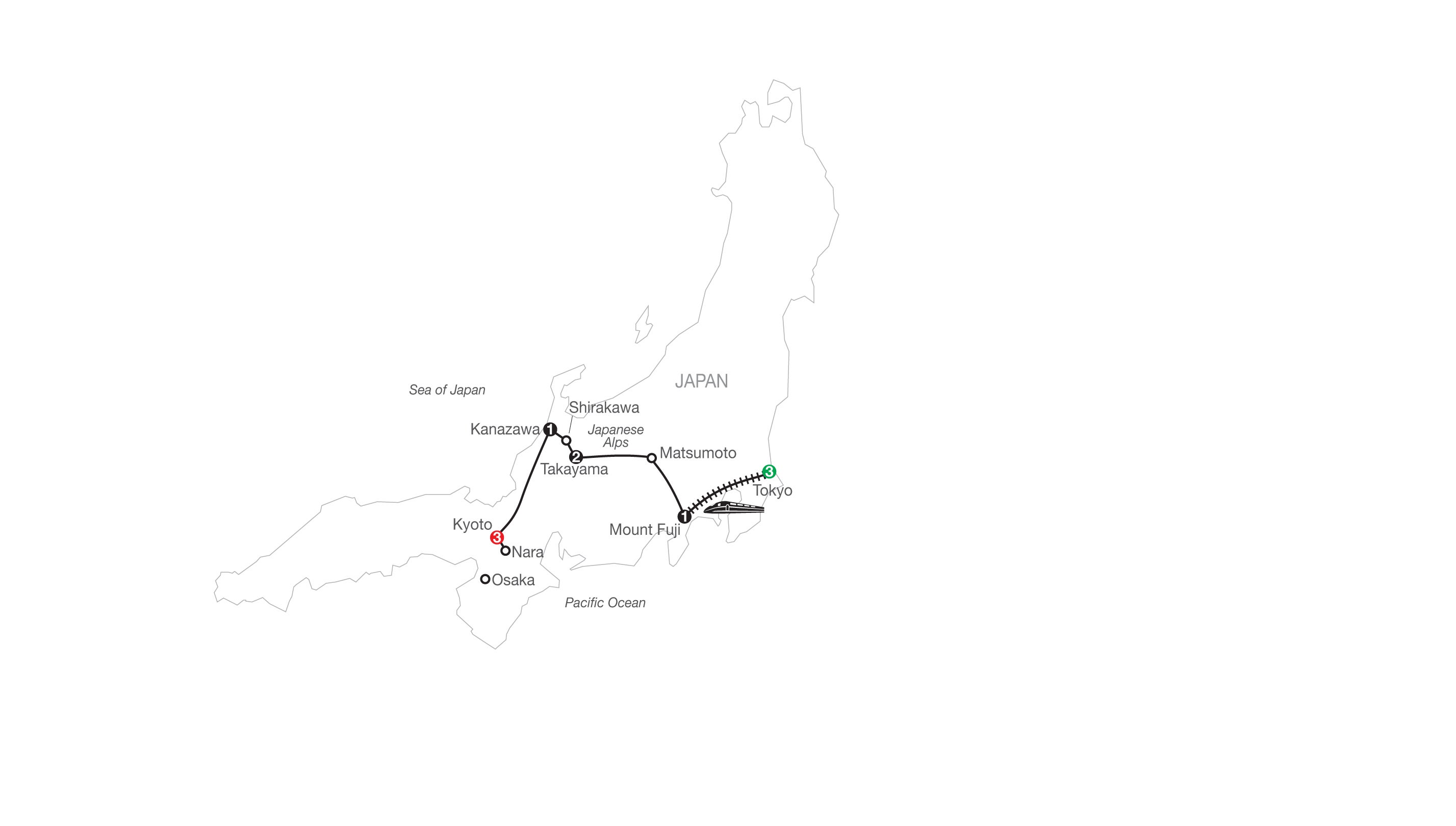 Today begins at the morning market, where farmers display locally grown fruits, vegetables, and flowers. Visit Takayama Jinya, a former government office during the Edo Period from 1692-1868. This well-preserved building is a national historic site and the only remaining building of its kind in Japan. End with a fun sake tasting. This evening, you have the option to stay in a traditional Japanese ryokan (additional fee and pre-booking required). (B)