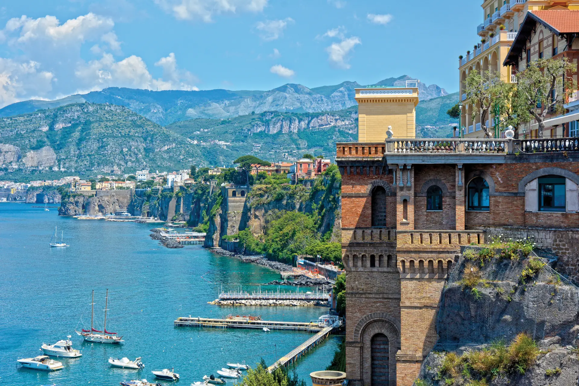 A private transfer will take you to the mighty Mt Vesuvius this morning, where you’ll meet a local volcanology guide. Hike to the summit for 360-degree views over the Bay of Naples and peek inside the crater. Although Mt Vesuvius is still considered an active volcano, the last eruption was in 1944 and there's no sign of lava. See firsthand the awesome power of the volcano that engulfed the cities of Pompeii and Herculaneum in 79 AD. In the afternoon, travel by private vehicle to the resort town of Sorrento. People have been coming to the peninsula and islands of the Sorrento region for at least 2000 years. There are many options in this small seaside town with its piazzas, maze of old streets, cafes and shops. Sorrento is also famous for its lemon groves, which produce the famous limoncello, and you’ll enjoy a tasting of the liqueur this evening.